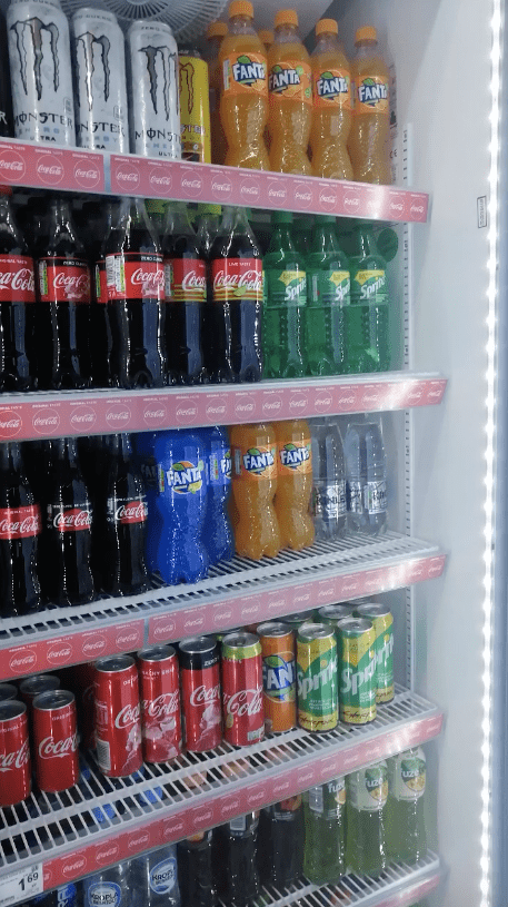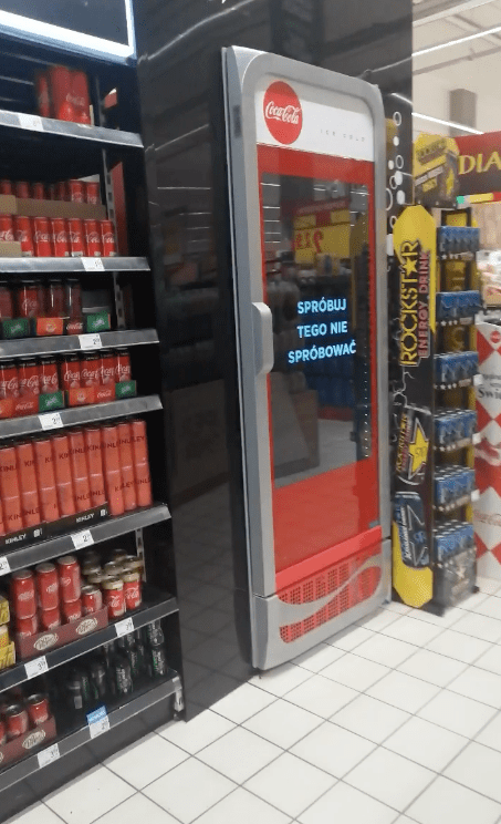 Lodówka Coca-Coli jest bardzo nowoczesna i przyciąga wzrok.