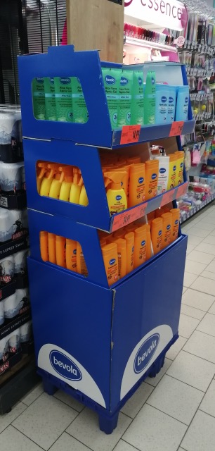 Przykładem jest bardzo ciekawy ekspozytor kartonowy, przygotowany przez sieć Kaufland dla marki własnej „bevola”. Innowacja polega na odsłonięciu widoczności eksponowanych produktów z boków stojaka.