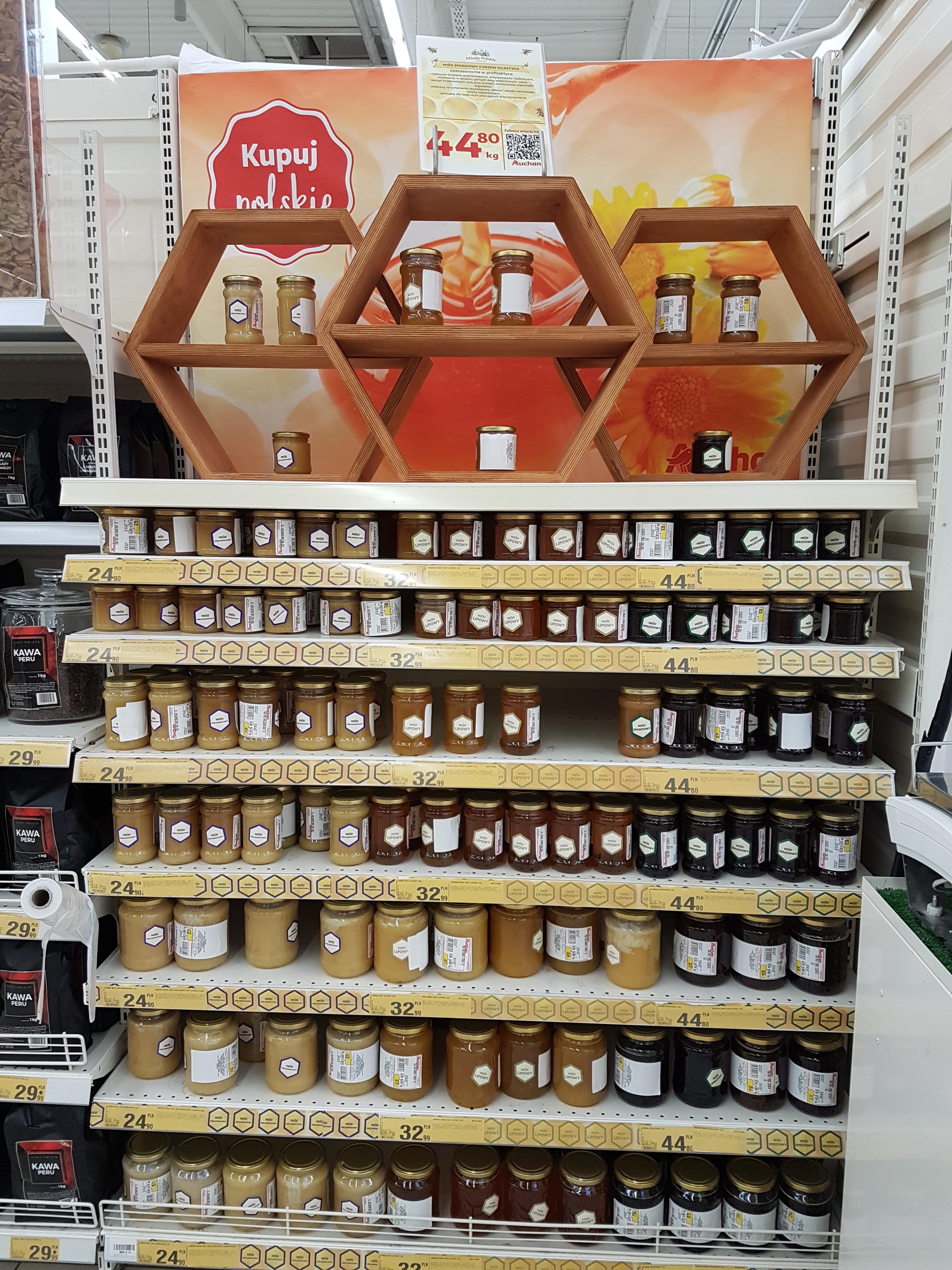 Okazuje się, że miód też można sprzedawać na wagę, z tym, że shopper nie nalewa sobie produktu wedle potrzeby, tylko ma standardowe rozmiary już napełnionych słoików.