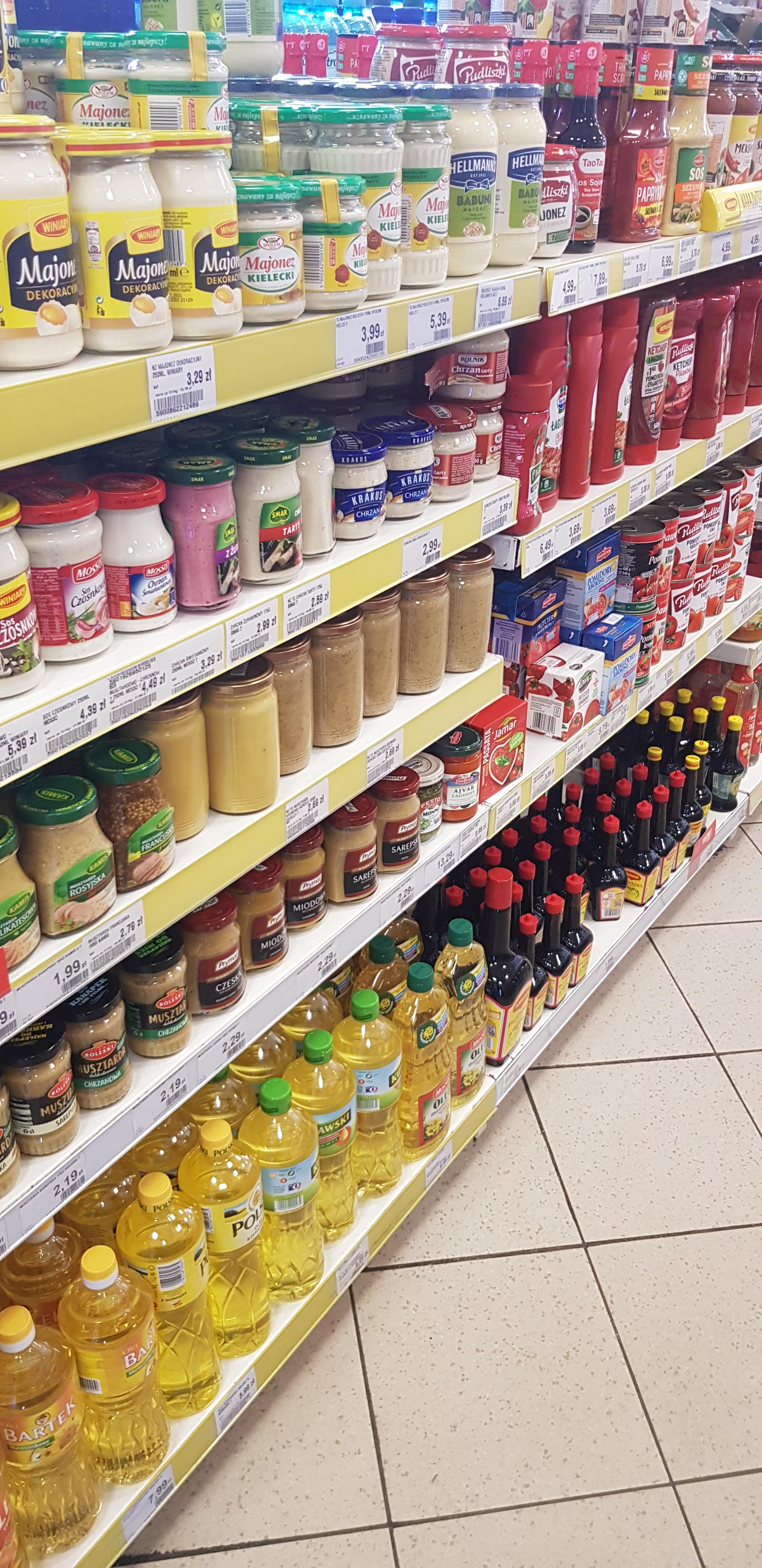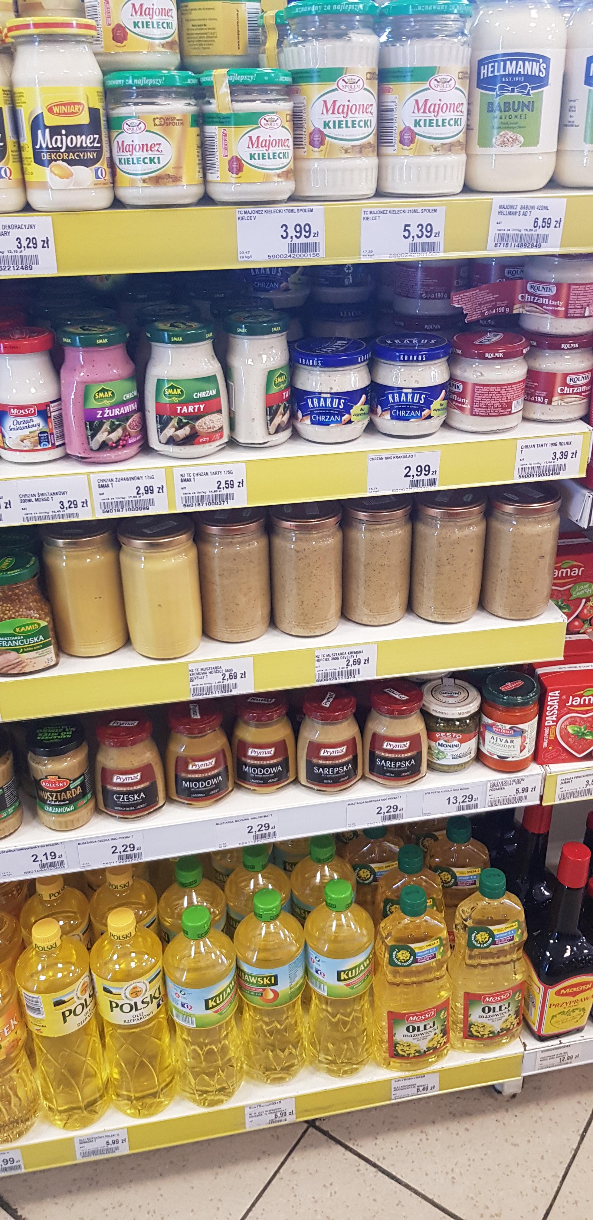 Develey całkowicie zrezygnował z tradycyjnych etykiet dla swoich musztard w „czeskich” odmianach smakowych. Okazuje się, że brak kolorowej etykiety, nagle wyróżnia produkt spośród konkurencji na półce. Dodatkowo wspiera marketingowo przekaz o prostej recepturze bez konserwantów. Tym razem jest to linia economy, co również czyni ten pomysł bardzo klarownym i konsekwentnym. „Mniej, znaczy więcej…”.